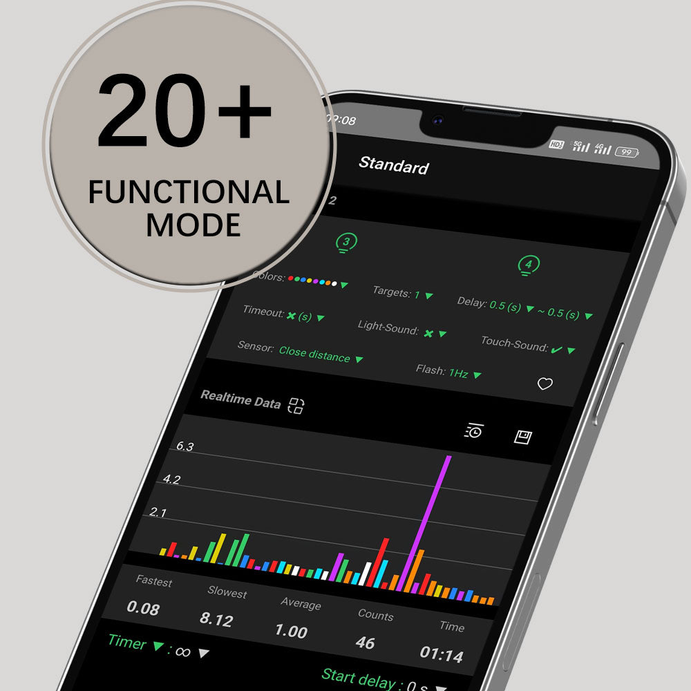 1: Upgraded version of reaction training light, adding more induction off modes, flashing light prompts, increasing sensing distance, upgrading from 6 colors to 8