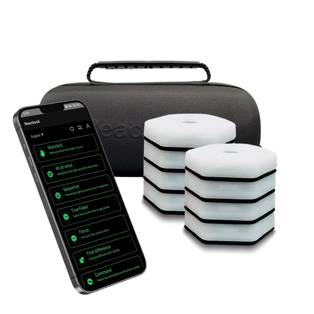1: Data storage and analysis: The reaction training light will record the user's training data, including reaction time, the number of times the light was successfully turned off, and the number of times it failed. These data can be collected and analyzed through the APP, providing various charts and reports. Users can understand their training progress, trends, and comparative analysis, in order to better evaluate their abilities and develop training plans, which is very suitable for individuals and groups to use